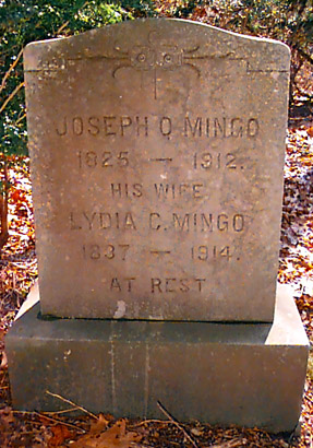 JOSEPH Q. MINGO 1825 - 1912. HIS WIFE LYDIA C. MINGO 1837 - 1914. AT REST Joseph Mingo (aged 45, Black, Carpenter), appears with Lydia Mingo (aged 30, Black, Keeping House), and their children Samuel G. Mingo and Parthenia Mingo in the 1870 Tisbury census, adjacent to Samuel (76) and Eliza (65) Mingo, and the family of Chas. W. James. It is likely that Joseph and the elder Samuel were related - perhaps son and father? According to the 1866 record of Samuel's fourth marriage to Eliza N. Jackson, Samuel was born c. 1795-6 in Tiverton, RI, the son of Isaih and Anna Mingo. Joseph Q. and Samuel Mingo do not appear in the 1860 Tisbury census, but do appear in the 1861 Massachusetts Indian Census for Christiantown. There is also a reference to Joseph Q. Mingo of Gay Head in a November 1861 issue of the Vineyard Gazette. Joseph Q. Mingo appears in the 1907 directory of West Tisbury as a Christiantown farmer. Joseph Mingo's death notice can be found in the 10 Apr 1913 issue of the Vineyard Gazette. ![]() ![]() |