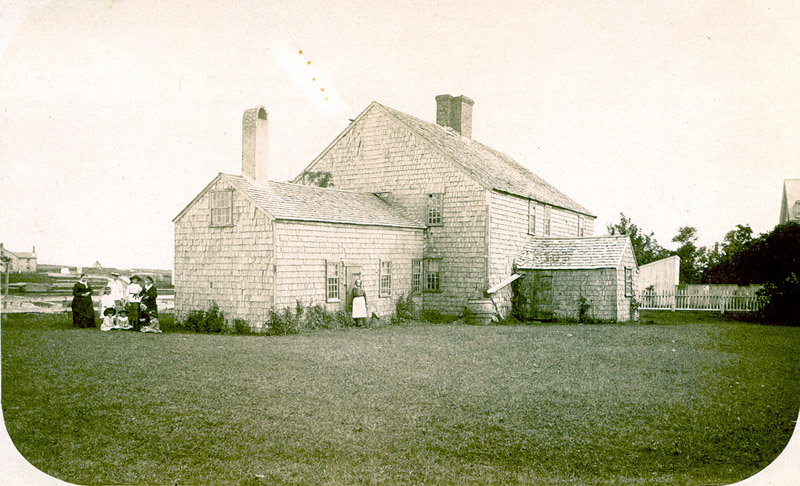 661. LUCY, b. 24 Mch. 1794; m. (1) CHARLES BUTLER (200) 17 June 1813; (2) _____ HOBERT. [See Lucy's photograph! Marcia Arem <arem645@home.com> writes "I have a picture of a Lucy Mayhew Hobart (born 3/30/1794 died 6/28/1890) standing in the doorway of her birthplace, the old Mayhew house in Edgartown (this was all written on the back of the photo.) [The second photograph] is a more distant shot of the same house with Lucy, as well as another group of people off to the side. I believe that she married a John Hobart (born 1779, died 1853.) I am still trying to reconstruct who their children were, but one may have been Caleb Hunt Hobart, born 1822 ( he is my great-great grandfather.)]
